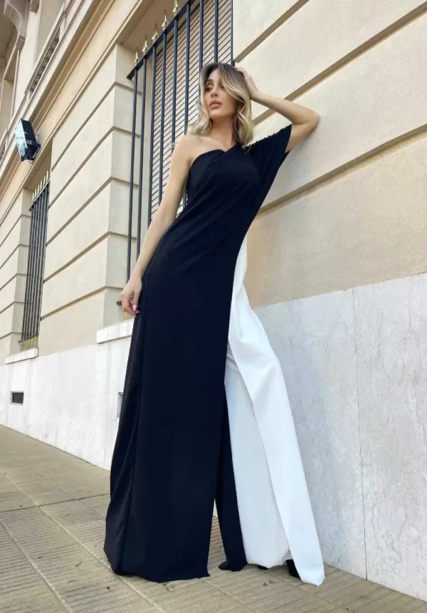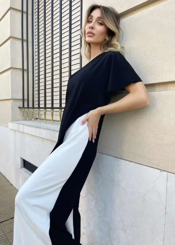 Mono de vestir combinado con tajos